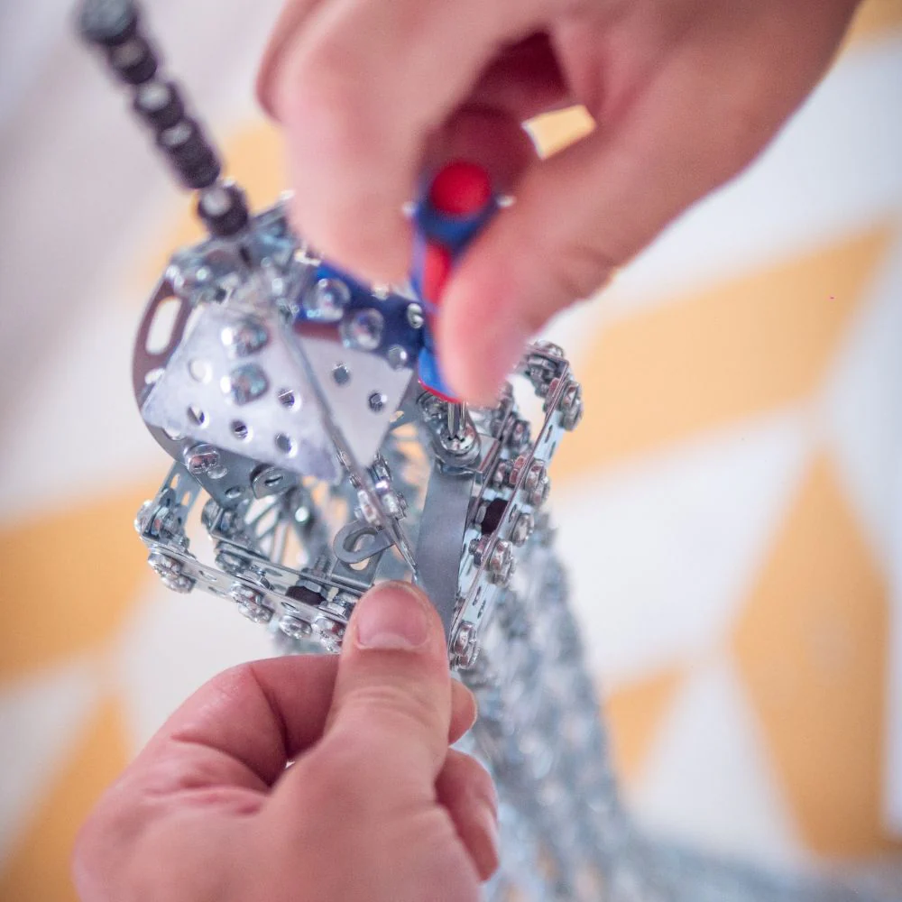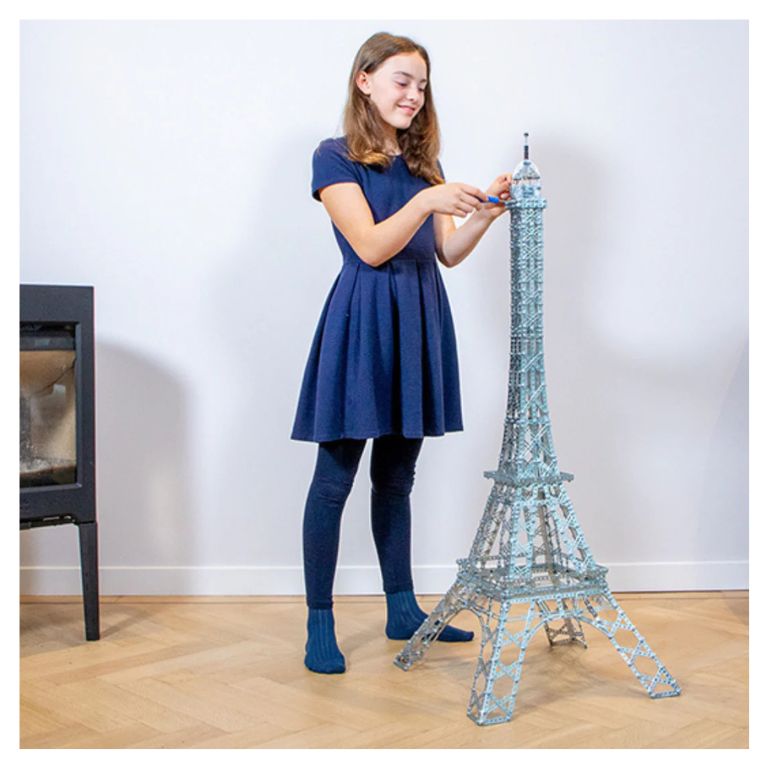 The largest structure in our Masterclass series with over 2,300 parts offers young engineers and adult hobbyists entertaining construction fun. The metal profiles in the set are made of galvanized strip steel. The model Eiffel Tower reaches a height of approx. 125 cm and is therefore an ideal decorative item for the living room at home. The metal construction kit is delivered in a practical, stable and high-quality sorting case.