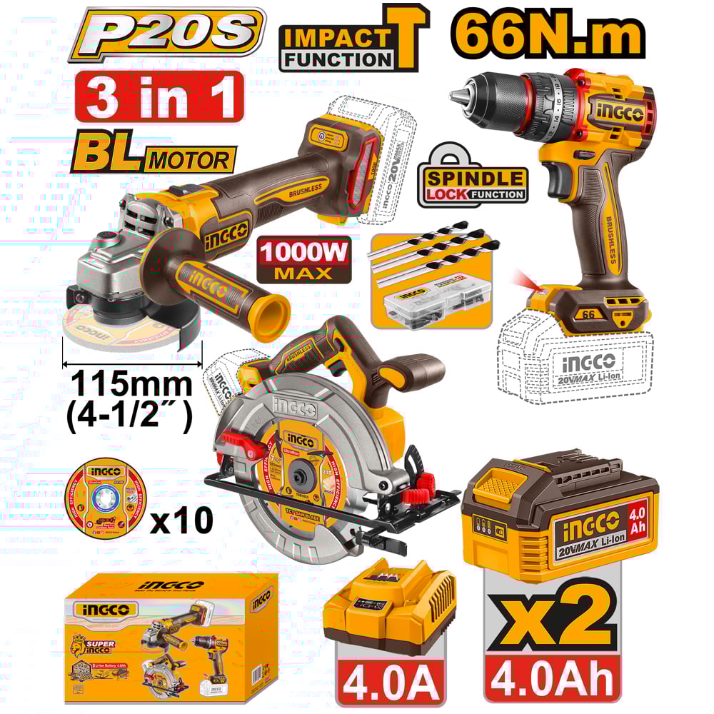 Ingco Cordless 20V 3 in 1 Comb...