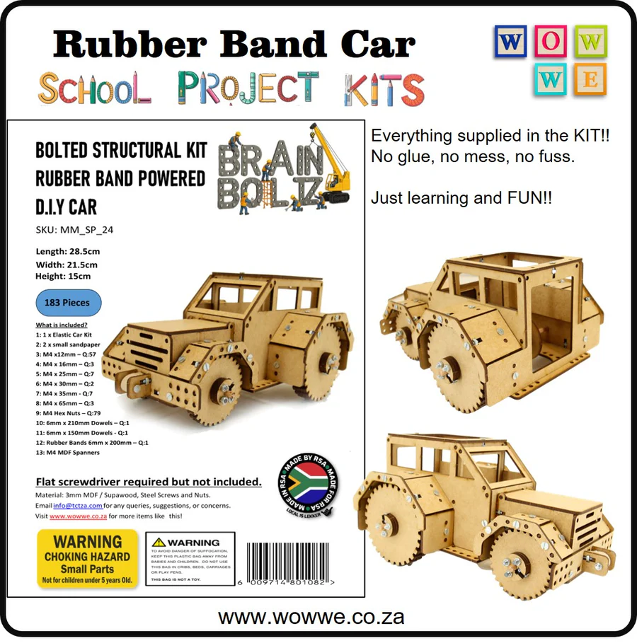 Brain Boltz Rubber Band Powered Car Kit – Hands-On STEM Learning for Kids